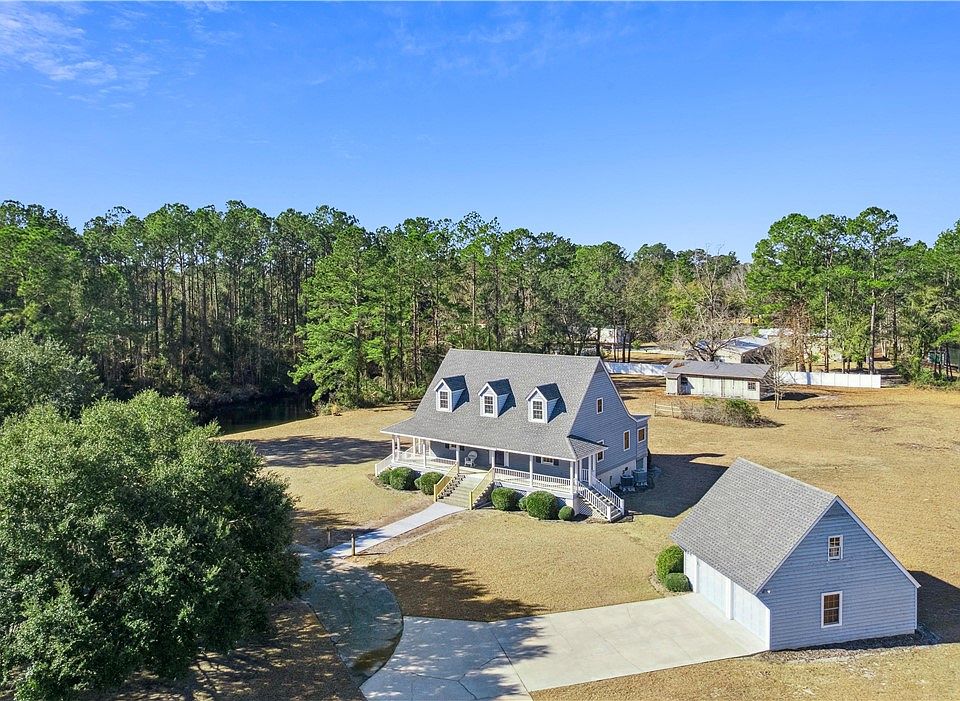 This single-family home sits on approximately 4.09 acres! Close proximity to I-95, shopping, and dining. This four bedroom/two bath home is approximately 2144 sq. ft. The primary suite is on the main level, with the additional three bedrooms and full bath upstairs. Hardwood floors and custom woodwork make this home stand out amongst the rest. No HOA! The recently updated walkway leads to an inviting front porch for relaxation. The two-story detached garage has plenty of room for vehicles or office space. At the rear of the property, you will find a full-size storage building with power and water. Call you favorite Realtor today to schedule a showing of this unique property and home.