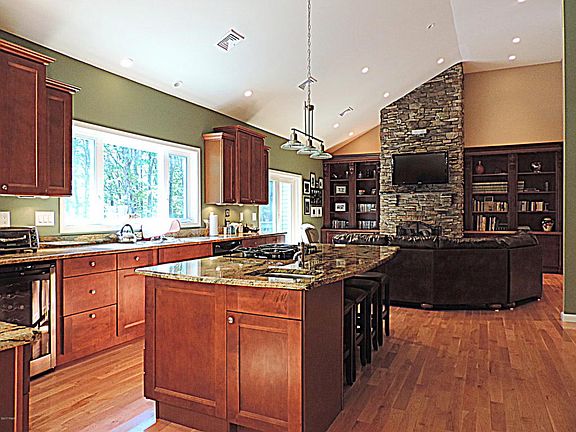 - Inside Features: Living Room Fireplac, Laundry 1st Level, Cathedral, Cable TV, Fam Room Lower Level, Contemporary, Attic Storage, Whirlpool - Spa, Walk in Closet, Recreation Room, M Bdrm w/Bath Suite, M Bdrm on 1st Floor, Center Hall Foyer, Cable Digital, Bar, Wet Bar, Utility-Mud Room, Open Floor Plan, Kitchen Island, Living Room, Fam Room Fireplace