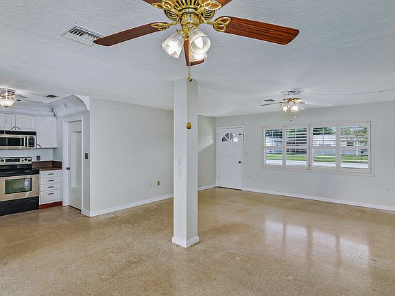 Great three bedroom, two bathroom pool home in highly desirable central Merritt Island! Get settled before the end of the summer! Impressive main living space has been opened up to create a bright and open contemporary feel. The original terrazzo floor has warm browns and tans, but can be easily tiled or carpeted over, if desired. Stylish stainless appliances, ample cabinet space, and pass-through window out to the back porch are all highlights of the kitchen. The multi-purpose 23' x 14' under air Florida room adds a second spacious living space giving this home a larger-than-average feel. Relax by the sparkling blue in-ground pool or play in the generously sized fenced back yard. Located close to highly-rated local schools, shopping, and restaurants. Only 15 minutes to the beach!