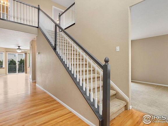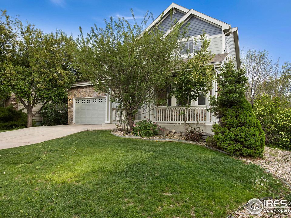 Your beautiful new home awaits! Situated in the highly desirable Blackbird Knolls neighborhood, this gorgeous 2 story home has everything you're looking for. A soaring entryway welcomes you with vaulted ceilings, and upper level windows flood the home with natural light. A few steps down a hardwood hallway lead to an open and spacious kitchen featuring beautiful cherry wood cabinetry with plentiful storage as well as a large pantry, adjoining a large living room featuring a gas fireplace and a built-in speaker system ready to connect to your sound system. Step out the sliding glass door and enjoy a huge Trex deck and large back yard with mature landscaping, perfect for entertaining or simply enjoying the outdoors. Off the kitchen, and accessible from the entry is a huge formal dining room that could also serve as a family room or a reception area. Upstairs you will find 4 spacious bedrooms as well as a bonus space at the top of the stairs that could be used for office or craft space or perhaps a nice sitting nook. The primary suite has a vaulted ceiling and features a big picture window that looks out on to the back yard as well as a 5-piece bath complete with an oversized soaker tub and a large walk-in closet. The basement is roughed in and includes 2 egress windows, making this home easy to grow into. Very close to both Boedecker Lake and Lon Hagler Reservoir, and walking distance to Loveland Classical Schools. The peaceful and serene neighborhood is replete with mature landscaping and features a neighborhood park right across the street! This home has so much to offer and is waiting for you to make it yours.