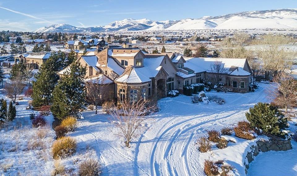 This luxurious home resides in the gated community of Pecetti Ranch Estates, located in South Reno. Situated on over 2 acres, this estate features the only private pond in the development, a pool and hot tub, 3 water features, an outdoor kitchen, dog run, movie theater, gardening area, a 1,800 square foot 4-car garage, and ample driveway for entertaining. Not only does this property have a panorama of the Sierra Nevada mountains but also a spectacular view of downtown Reno. This is an amazing must see!