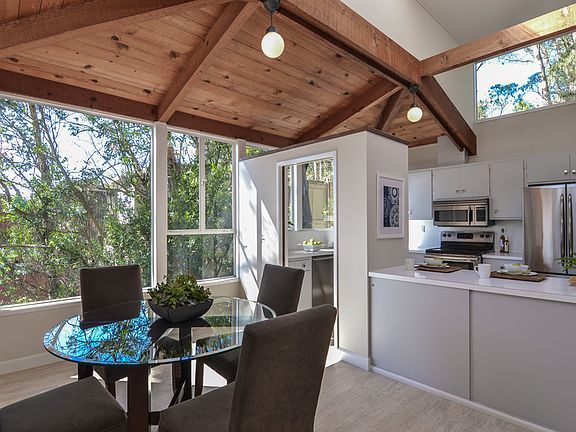 Soaring panoramic views form this contemporary home designed by the influential architect Charles Moore, famously responsible for the Sea Ranch style. Open floor plan with loads of light, the dining area flows into the kitchen + overlooks the sunken living room with floor to huge windows, vaulted cathedral ceilings + spacious balcony facing the view. Main home consists of 3 brms/2.5 updated bathrooms. Separate office/guest quarter with own bathroom + balcony located just a few steps below w. separate entrance. Abundance of storage accessible below the house via two separate doors. Lovingly updated with new roof, air-conditioning, and generator + many system upgrades. Sited at the end of a cul-de-sac in North Berkeley in a serene setting, it overlooks the open hillside of the Berkley Lab + is just steps away from walking paths and parks, this is country living with dramatic views! A secluded and private setting - just minutes to downtown Berkeley and the SF commute.