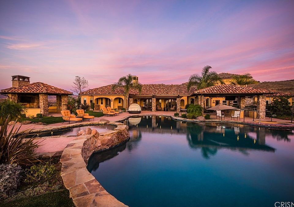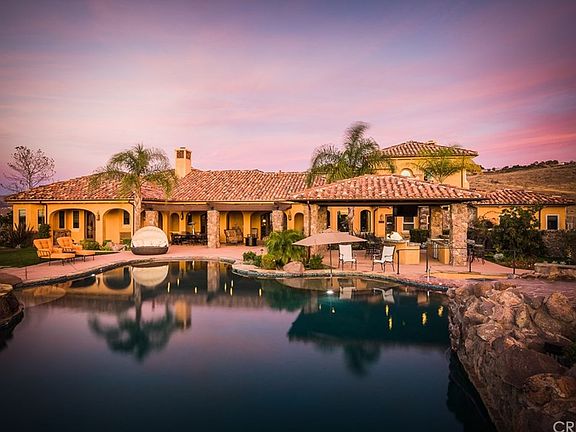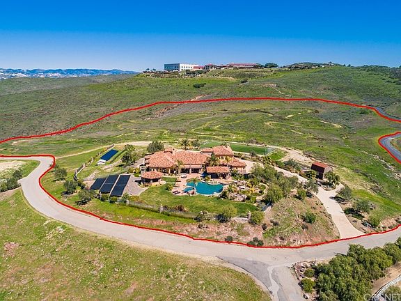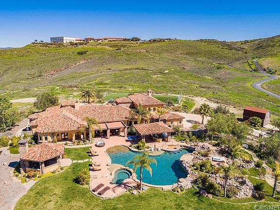 Ready to fall in love with a home that will take your breathe away? This amazing, gated, Tuscan estate is one of a kind. Set on 23 acres with incredible views of mountains, golf course, Reagan library & even the ocean on a clear day. From the moment you pass through the gates on pull up to the motor court you will know you are at a special home. The gorgeous double doors open up to a warm & inviting entry. The open floor plan has a formal living room with hardwood floors, hand distressed wood beams & a huge fireplace. The large family room has a wet bar, custom entertainment center & double doors out to the backyard. The family room is also open to the gourmet kitchen with huge island, Viking stove, newer Sub Zero refrigerator, custom cabinets & granite counters. Just off the kitchen is the butlers pantry with warming drawers, extra storage & large pantry. In addition to the large eat in area in the kitchen there is a formal dining room with crown molding, tumbled stone floors & views of the Reagan library. The master suite boasts spacious his and her closets, an office area/sitting room, fireplace & luxurious master bath with dual sinks, jetted tub and a huge multi head shower. The bonus room upstairs is currently used as an office would make an amazing game room ans has a 3/4 bathroom, bar/kitchenette, balcony & a projector with retractable screen. The entertainers yard features a resort style pebble tec pool with swim up bar, Baja shelves, grotto, & huge spa.
