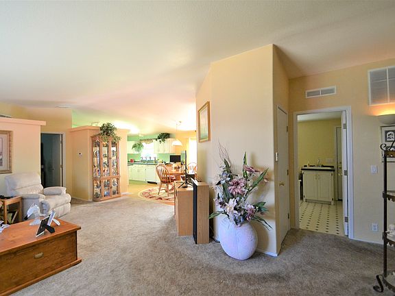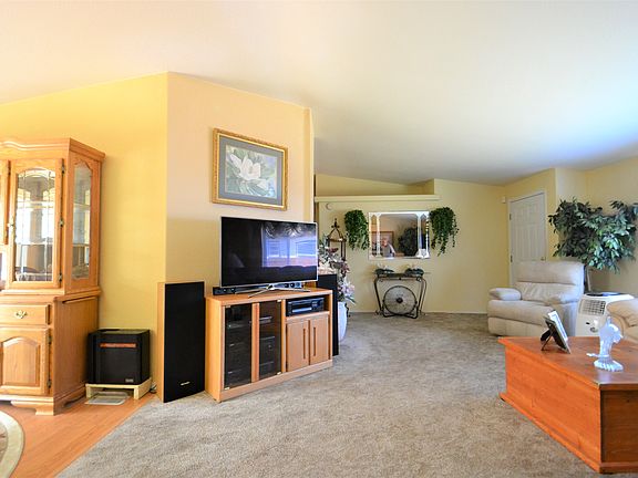 Beautifully maintained 1998 double wide manufacture home, features include 1680 sqft, two HVAC window AC units, 2 car garage,, 3 large bedrooms w/master suite, laundry room w/large sink, upgraded insulation in attic, new hot water heater, new flooring through out, new garbage disposal, Gas appliances.Sale includes washer and dryer & new refrigerator. City water & sewer, HOA is for park road maintenance. HOA is $60 a quarter.