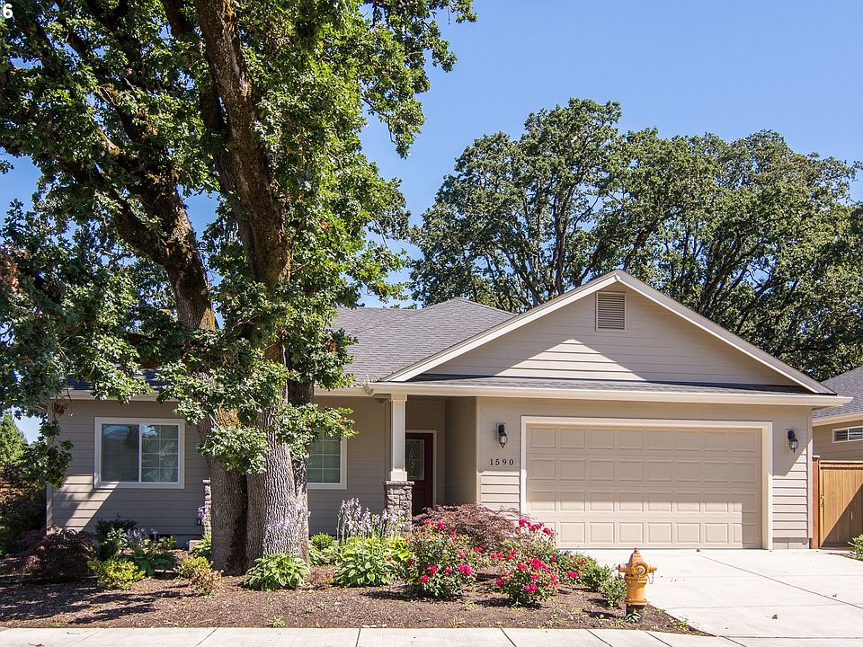 Lightly lived in and shows like new! Wonderful great room style with popular amenities--wood floors, granite, stainless appliances, large pantry, gas fireplace and separation of master and other bedrooms. Master has huge closet, bath with granite & double sinks. Private and charming back yard with patio. This is the house you have been waiting for just blocks from the bike path.