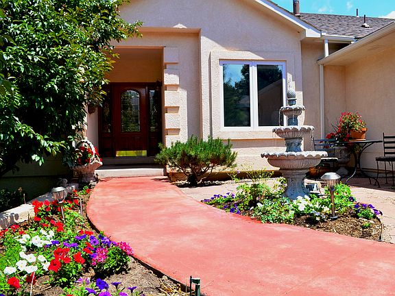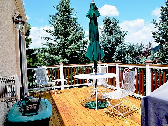 Gorgeous custom stucco ranch home in immaculate condition on a spectacular private lot w/ beautiful mature landscaping in Woodmoor. Open flowing floor plan w/ main level office or library w/ French doors, formal dining room, gleaming hardwood floors, gourmet kitchen w/ center island, Corian counter, pull outs, large nook that walks-out to private deck, spacious vaulted great room w/ gas fireplace, in wall speakers, master bedroom features new carpet, crown molding & attached 5piece bath w/ jetted tub, secondary bedroom on main & full bath, walk out lower level features 10 ft ceilings, wet bar w/ hickory cabinets, 3 large bedrooms, one en suite w/ newer carpet, flag stone patio in lush treed private backyard, central air and oversized 3 car garage in move-in ready condition. A must see!