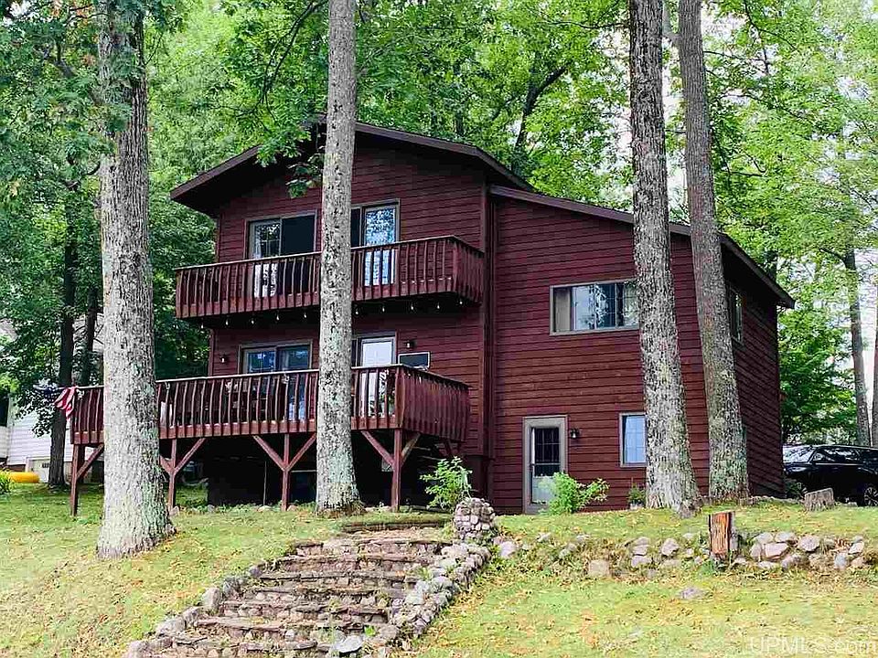 Panoramic views from your living room and also master bedroom with private deck area! Fabulous layout with large living room, wood burning fireplace, charming kitchen with dining area and walk-out lower level with family room and fourth legal bedroom. Stubbed in for second bath and large storage area. Newer furnace! Two docks, shed at water's edge to store all your water toys. Sandy bottom, large yard and only 14 steps from the house to the lower yard along the water. Over 150 Ft. of water frontage and ample parking space and rear yard for garage possibility. A MUST SEE!