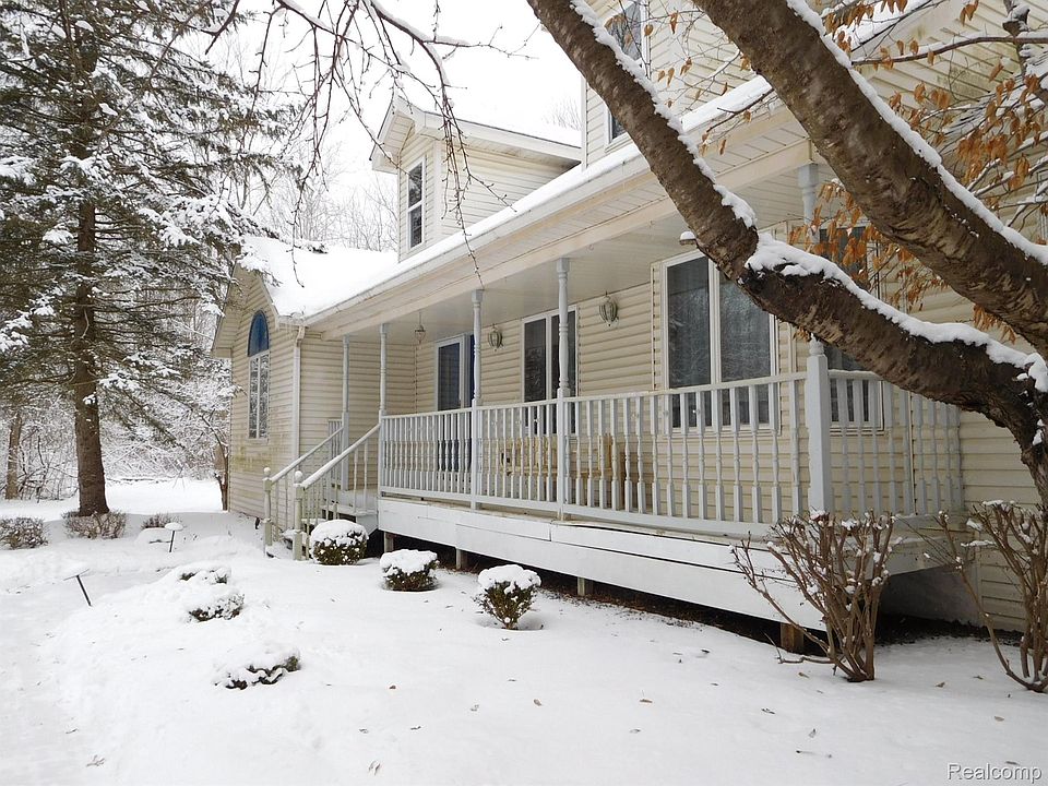 Relax and enjoy nature on this beautiful 3+ treed acres. Enjoy the covered front porch or the back stone patio. Open space in this 3 bedroom 2 bath ranch - perfect for entertaining - with excellent floor plan. Foyer w/double coat closet opens to great room with focus on fireplace and 2 glass exterior doors. 26x10 eat-in kitchen w/ numerous oak cabinets and tons of counter space. Formal dining room features laminate flooring. Many windows in this home keep it light and bright. Full main bath w/ tub. Primary bath features tub and separate walk-in shower. Primary bedroom w/ walk in closet and private sitting room or home office. 2 additional bedrooms w/ double closets and windows looking out on nature. 12x6 laundry room w/ cabinets & laundry tub. Spacious pantry off laundry room. Garage 24x21 for additional storage. Definite move-in ready! UPDATE: Roof replaced June 2012