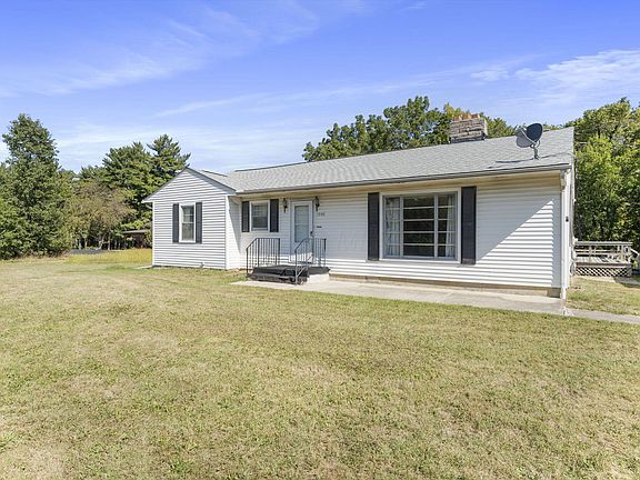 Hard to find 3 bedroom, 2 ½ bath ranch home on a wooded 1 acre lot within Delaware City limits. Tucked behind a privacy tree line, you will have your own personal oasis. Living room and bedrooms have original hardwood floors. Kitchen has an eat-in area and breakfast bar counter area. Large newer family room addition overlooks the backyard and wooded lot line. Half bath off family room has shower area roughed in but not completed. Basement has tiled laundry area, large office/hobby work area, full bathroom and large walk-in closet. Outside you will find a side deck that allows you to enjoy the view of your oasis. Extra deep detached 2 car garage with huge covered storage area on back sits close by. Smaller additional storage shed at the back of the property. Selling As-Is. House has a lot to love but needs some love. Priced accordingly. Roof only a few years old.