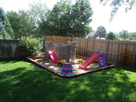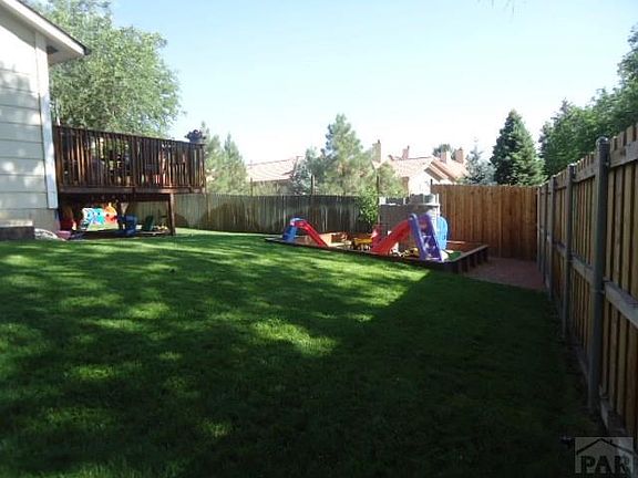 This home boasts pride of ownership with beautiful mature landscaping in the front yard that includes large rocks purchased from Cheyenne Mountain Zoo. The park like feel of this yard wraps around to the rear of the home with newer six foot wood privacy fence, fresh sod, automatic sprinkler system front/back, and yes a sand pit. The wood deck adjacent to the master bedroom has been completely refurbished and is the perfect spot to enjoy a relaxing evening, the second deck is located off the kitchen for ease of outdoor grilling. Electric garage door with access pad, newer hot water heater 2018, newer roof 2019. Kitchen consists of granite countertops, gas stove with electric stove hook-up as well. Kitchen island is on wheels to allow easy mobility when entertaining. Additional washer/dryer hook-ups located in the upstairs hall closet, should you desire main level laundry. Ample storage in garage as well as utility room. Do not miss out on this spacious rancher with full basement and the opportunity to be the envy of the neighborhood. All measurements approximate and information contained herein deemed accurate but not guaranteed - buyer to verify.