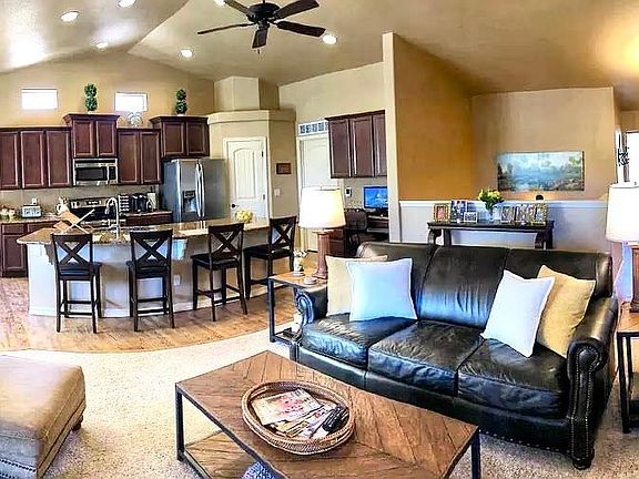 This immaculate home is nestled in the exclusive Flying Horse community, just south of North Gate Blvd and the edge of the Black Forest. Built in 2014, this home is a contemporary mountain style and met the needs of our family of 5 with room to spare. It features an open main living area, with hardwood floors and carpet, vaulted ceiling and tons of sunlight. All carpet in the house is newly installed in summer 2021. The kitchen offers a GE Profile oven, granite island with seating (5 chairs included), stainless steel appliances, a multitude of storage, and a dining area featuring expansive views. The living room features a gas fireplace which also is visible to those on the outdoor patio. The master suite is on the main level with a large walk in closet, separate Jacuzzi tub and walk-in shower. Also on the main level is a an additional full bathroom and a vaulted bedroom/office. The basement is fully finished with ample natural light and 9' ceilings which includes two large bedrooms, a full bathroom, additional living space for a media room, office, or whatever! The property is professionally landscaped with in-ground sprinklers and has a nice patio area. The three-car garage is massive. We installed a premium Trane air conditioner in 2018. The washer/dryer hook ups are on the main level adjacent to the kitchen and garage access. This home is available on 15 Oct 2022. It is an ideal home for those working on the Air Force Academy or at Peterson AFB (25 min commute down US-83 and Powers Blvd). I-25 is minutes away with abundant shopping nearby and easy access to Denver or even the ski slopes. The home is within walking distance of the award-winning Discovery Canyon Campus (K-12) which features the International Baccalaureate (IB) program. This property is owned and managed by a private owner and advertised by Keller Williams agent Amber Dregalla. One year or more
