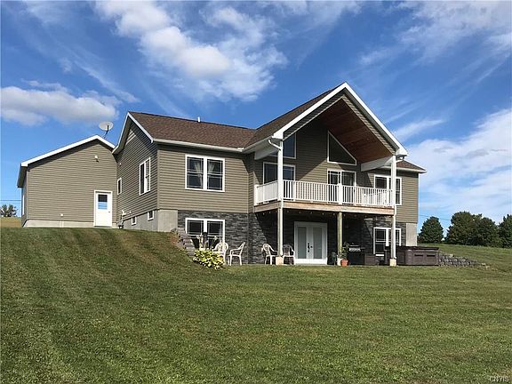THIS IS THE ONE YOU'VE BEEN WAITING FOR!!! Custom built, nearly new contemporary ranch home just outside the Village of Mannsville on a gorgeous country setting. Come inside this beautiful home and enter the foyer that opens up to the living/dining/kitchen combo with vaulted ceilings and tons of natural light. Double sliding glass doors open up onto the deck with amazing views. The kitchen is designed with a great layout, stainless appliances and quartz countertops. First floor master suite with two walk-in closets and beautiful en suite bath. Finishing out the first floor is another bedroom, full bath, and laundry room. On the lower level you'll find two more bedrooms, a full bath, family room, bonus room, and lots of storage. Two car attached garage and separate one car garage with workshop and storage. Spectacular location on just over one acre. Two areas for outdoor entertaining including the lower patio with a hot tub! Immaculate home built by local reputable builder. Don't let this one slip away! Call or text today!!!