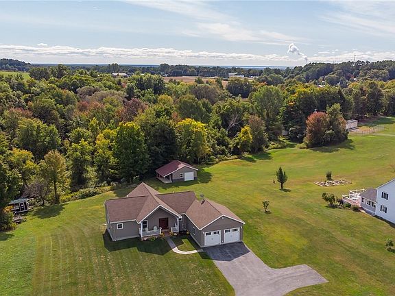 THIS IS THE ONE YOU’VE BEEN WAITING FOR!!! Custom built, nearly new contemporary ranch home just outside the Village of Mannsville on a gorgeous country setting. Come inside this beautiful home and enter the foyer that opens up to the living/dining/kitchen combo with vaulted ceilings and tons of natural light. Double sliding glass doors open up onto the deck with amazing views. The kitchen is designed with a great layout, stainless appliances and quartz countertops. First floor master suite with two walk-in closets and beautiful en suite bath. Finishing out the first floor is another bedroom, full bath, and laundry room. On the lower level you’ll find two more bedrooms, a full bath, family room, bonus room, and lots of storage. Two car attached garage and separate one car garage with workshop and storage. Spectacular location on just over one acre. Two areas for outdoor entertaining including the lower patio with a hot tub! Immaculate home built by local reputable builder. Don’t let this one slip away! Call or text today!!!