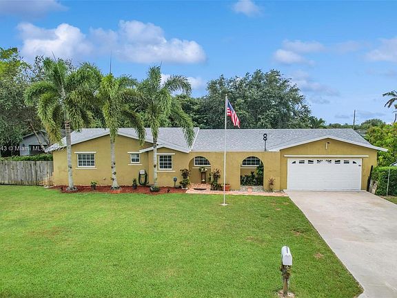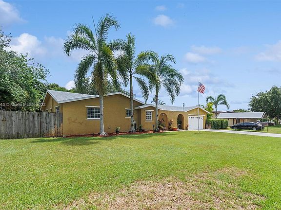 Well kept, 4/2 on a spacious lot full of luscious landscaping. Room for a pool, RV, boat and all your toys. Exotic palms trees, beautify mature Oak, Brazilian grape, and tropical fruit trees to include, mango, starfruit, and passion fruit. New roof (2022) and newer A/C (less than 5 yrs). All cabinets are solid wood, fireproof rated solid wood interior doors. Large back patio and outdoor grilling station. Tankless water heater. 2 car garage has been converted to a bedroom but could easily be reverted making the house as 3/2 with a 2 car garage. This is a desirable neighborhood. South Dade Park within 1/4 mile that features skate park, basketball, tennis courts, walking trails, aquatic park and much more. Location! Close to all major highways and shopping! This is a GREAT place to live!