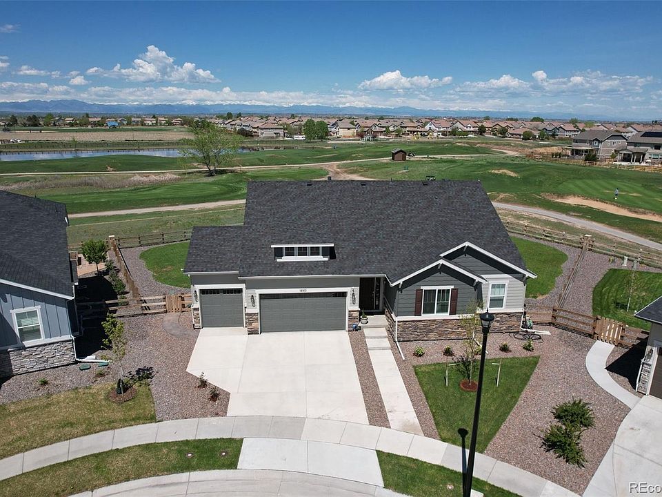 Welcome home to this bright, open and immaculately maintained ranch home located on Buffalo Run Golf Course. Situated on one of the largest lots backing to the course, the home has wide open views of open space and beautiful sunsets over the mountains. On the main floor you will find the kitchen with large island, extended height soft close cabinets, granite countertops, walk in pantry, cubbies for storage, all open to a bright living room with fireplace, and surround sound. Off the living room is the primary bedroom, with attached bathroom featuring dual sinks, granite counters, over sized shower and large walk in closet. Also found on the main floor, is the laundry, guest half bath, 2 additional bedrooms, and full bathroom. Walk down the wide stairway to the wonderfully finished full basement. The large family room is great for entertaining, especially with the ceiling mounted projector and 120 inch projection screen, also wired for surround sound! Finishing off the basement are 2 large bedrooms, and full bathroom. Enjoy summer nights on the covered patio with a ceiling fan to cool you, while enjoying your large backyard. and views of the mountains. This house has a great floor plan, wonderful features, and fantastic location and everything you want in your new home.