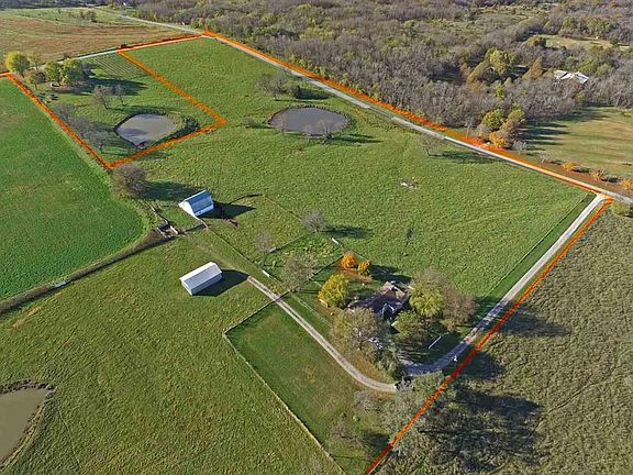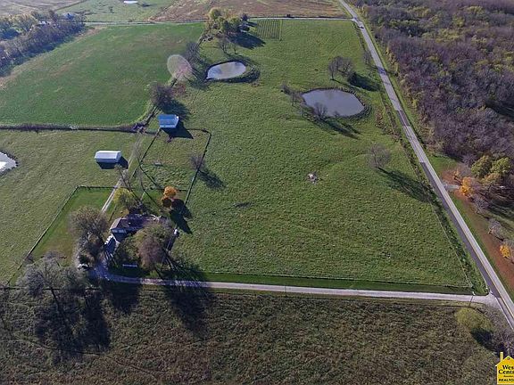 Location is key on this wonderful home situated on 32.3 acres between Pleasant Hill and Lone Jack. With roughly 1,300 feet of State Route E and 800 feet of E 161st Street road frontage, the opportunities are endless. The ranch style home consists of a master bedroom, guest room with a pocket door, a sunroom front porch, and a living room on one side. On the other side you will find a full bath, bedroom that is currently being used as a den, kitchen, enclosed breezeway/laundry room that connects the 2 car garage to the home, and a mudroom off of the back of the house. There are many hallway closets and an attic above the garage for increased storage. The home sits on a basement with wood shelving that will go with the home, with new plumbing and almost entirely new electric. The property is fully fenced and cross fenced for cattle or horse grazing, with a 35'x41' flat barn for storage and a 42'x24' barn for livestock. The southeast field is 12.45 acres of tillable currently planted in alfalfa and farmed by a local farmer. There are 2 ponds on the property to provide water for livestock or fishing. An extra feature that the sellers installed is a Dakota driveway alarm system to alert you if anyone comes up the drive. 3 bed, 1 bath house, 1,500 square feet, Basement, 2 ponds, Fenced and cross fenced, State Route E and 161st St road frontage, Dakota driveway alarm system, Excellent Pleasant Hill school system, Great proximity to Kansas City, Between Lone Jack and Pleasant Hill, Outbuildings for storage and livestock