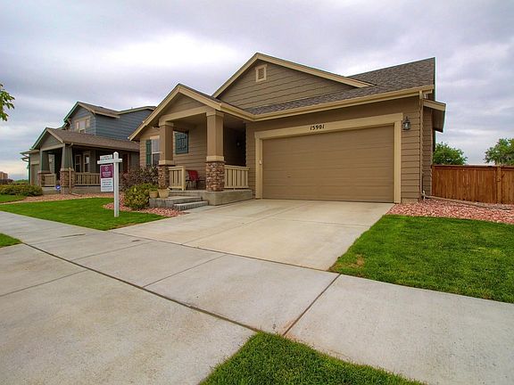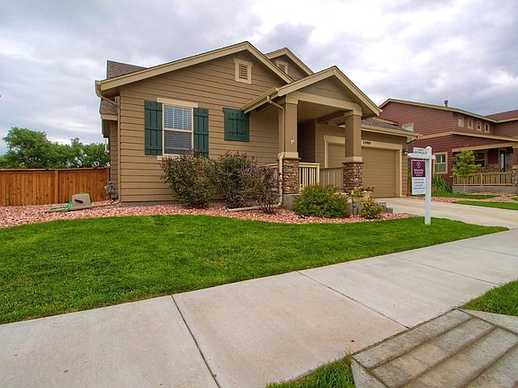 **Open House Saturday 08/12 11am â" 2pm** Donât wait on this one! This 2013 Ranch is new, open, bright, and in an ideal location. The home is on the border of the neighborhood providing privacy and quiet with only two neighbors. Behind the home is open space with incredible mountain views from the raised deck. Quick and easy commute to DIA, I-76 to Denver, E470, Highway 2, Shopping, Parks, Trails, and the upcoming commerce city rec center. HIGHLIGHTS: 97% Energy Efficient, Garden Level Basement, 9ft Ceilings, Open Kitchen, All appliances are newer and included, NEW Kitchen Backsplash, NEW Concrete Patio, NEW stain on Deck, NEW Grass and Landscaping, and NEW Fruit Trees.