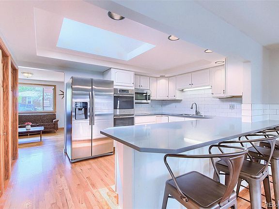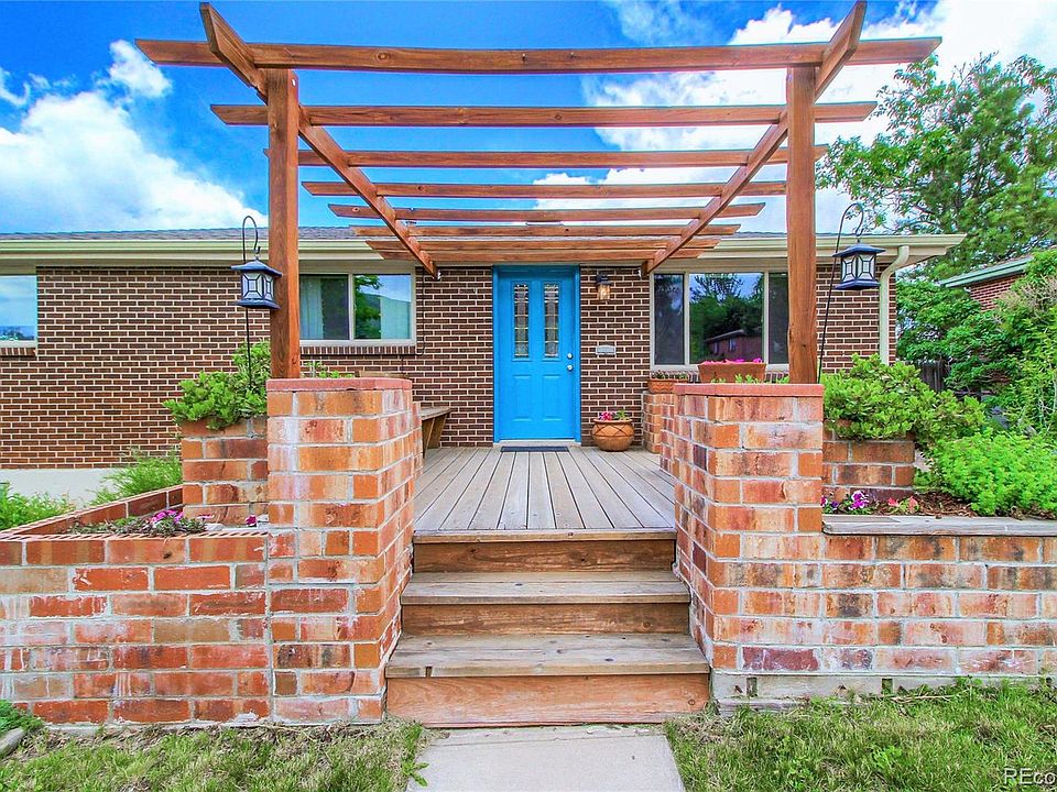 Gorgeous Mid-Century Modern brick ranch in Golden! Remodeled kitchen boast quartz counters, subway tile backsplash, SS appliance and extended island with seating. Spacious family room flows seamlessly off of the kitchen and features a gas fireplace plus an abundance of natural light. Main floor master with private 5pc bath, jet tub and walk in closet. Living room, office and an additional bedroom complete the main level. Finished basement with large rec room, 2 additional bedrooms and 3/4 bath. Large back yard with patio, deck, raised garden beds and firepit. Newer roof, furnace, water heater and fence. Updated windows, huge 2 car detached garage, south facing driveway, sprinkler system, raised garden beds, front pergola, ceiling fans, evaporation cooler, skylights, all appliances included, low taxes, no HOA, easy access to US 6 & 1-70. Amazing location - 10 minutes to Denver and 5 minutes to the mountains. This home has it all - hurry!