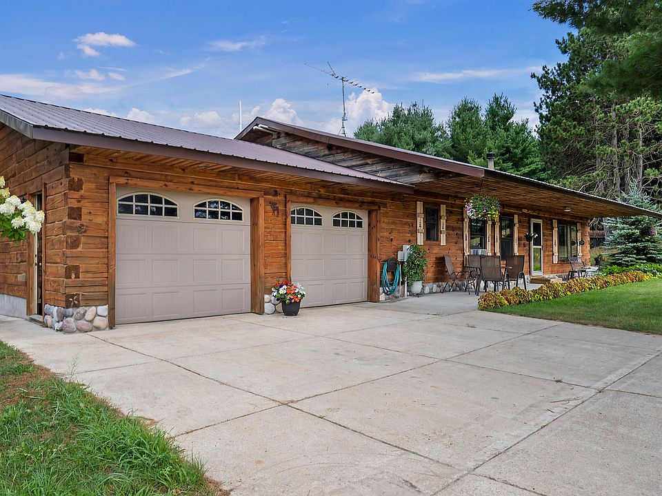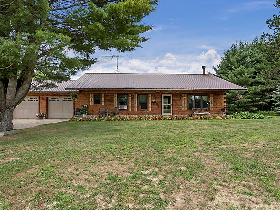 Take a closer look! This unique property features a stunning modern log home, set on a hill overlooking a private pond and 25 acres of woods and field. This gorgeous home features a 2+ car attached garage, a full walkout basement, and a large stone fireplace in the living area. Main floor master suite and laundry. Vaulted ceilings and a pleasant open floorplan! The full basement contains a second full kitchen, and walks out to a gorgeous backyard setting! The home is well hidden from the road down a peacuful winding driveway. This property draws wildlife from all over the area, and could be a hunters dream, with turkey and deer in abundance. Too much to list, call for more information, or to set up your personal tour!