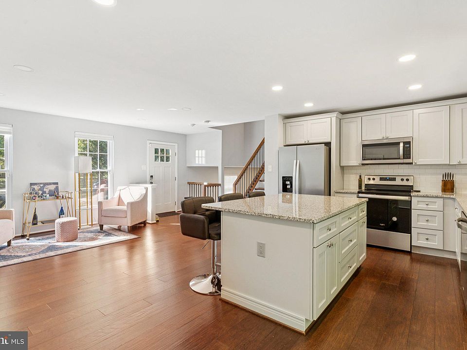 $5,000 lender credit with preferred lender! Timeless elegance meets modern comfort in this stunning, move-in-ready home tucked away on a quiet cul-de-sac in the highly sought-after Oaktree community. From the moment you arrive, the open-concept design and stylish finishes set the tone for the rest of this beautifully updated residence. Inside, wide-plank modern flooring and fresh paint create a bright, seamless flow through the main living areas. The fully remodeled gourmet kitchen is the true heart of the home—featuring granite countertops, a custom backsplash, soft-close cabinetry with brushed nickel hardware, and a full suite of Whirlpool stainless steel appliances, including a French door refrigerator, built-in microwave, and five-burner electric stove. The large granite island with breakfast bar seating is perfect for both entertaining and everyday meals. The cozy lower-level family room offers a fireplace insert with a tiled accent wall and wood mantel, making it ideal for movie nights or game days. Step outside to the private rear deck—perfect for summer cookouts or quiet mornings—overlooking a beautifully landscaped yard framed by mature trees. Upstairs, the spacious owner’s suite features two closets (including a walk-in) and a spa-inspired ensuite with dual vanities, custom tile, soaking tub, dual-head shower, and a heated Toto toilet and bidet with remote. Two additional bedrooms include blackout blinds for restful sleep, while the fully updated second bathroom offers a waterfall shower, custom tile, and glass shelving. A flexible bonus space provides the ideal spot for a home office or guest room. Additional highlights include a hardwood staircase with upgraded wrought iron railings, recessed lighting, cordless blinds throughout, a programmable thermostat, front storm door, and walkout access to the backyard. A newer roof adds peace of mind. Located minutes from Bowie Town Center, Bowie Marketplace, and the Bowie Center for Performing Arts—with easy access to major highways, Ft. Meade, Annapolis, and BWI Airport—this home delivers the perfect blend of luxury, convenience, and comfort. Don’t miss your chance to make it yours!