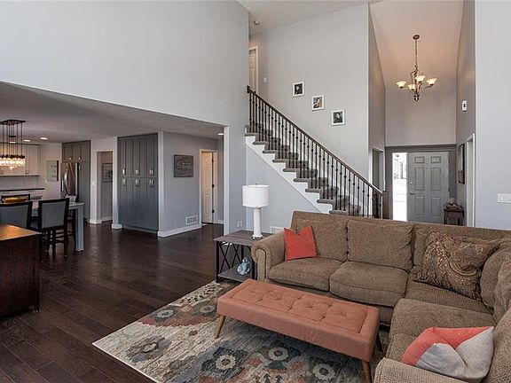 Stunning two story that feels like a one and half story with a main floor master. Over 3050 square feet of finish, Beautiful 18' soaring ceilings and huge windows newly updated hardwood, updated fireplace with ship lap, formal dining room, huge great room, updated kitchen w/custom amish built cabinets, large island, and granite counter tops, laundry room, half bath and a large master suite with spacious bathroom with double sinks, jacuzzi tub, walk in shower and walk in closet complete the main floor walk up the newly updated stairs to three bedrooms with new carpet and a full bathroom. Finished lower level features spacious family room with wet bar, fifth bedroom, bathroom and shower. Roof replaced in 2013, fresh paint in 2018, Three car garage. Large fenced yard with a fire pit, irrigation and a huge deck. A great home in a great neighborhood, close to shopping, parks, and trails.