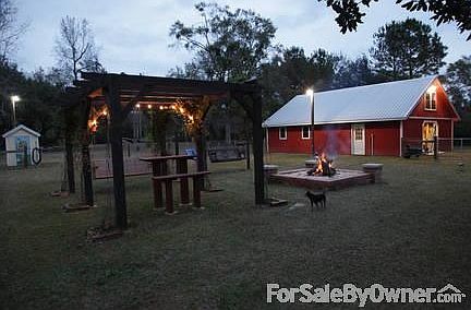 Total square footage including porches and carport is 3,451. Open floor plan, brick, bamboo, tile floors, walk-in closets in Master BF, large additional room wired for business use, 9' ceilings, exterior and interior insulation throughout, water heaters in attic, large fire pit in back yard, custom arbor with swing and built-in bar height table with bench, separate porch swing with child swing, custom built barbeque, fenced in area, complete lighting inside and outside fenced area, 30'x40' 2-story barn. Lots of storage space upstairs and down. Additional climate controlled room well insulated. House and barn is hardy plank construction, metal roofs. Manicured 2.5 acres complete with magnolia, various oak, Bradford pears, blueberry bushes, bamboo, palms, figs, persimmon, azaleas, pecan, and crepe myrtles. A beautiful property and home great for a family. Great place for a home-based business.Additional property info: http://www.forsalebyowner.com/listing/3-bed-Single-Family-home-for-sale-by-owner-15906-Allie-Byrd-Rd-39565/23988400?provider_id=28079