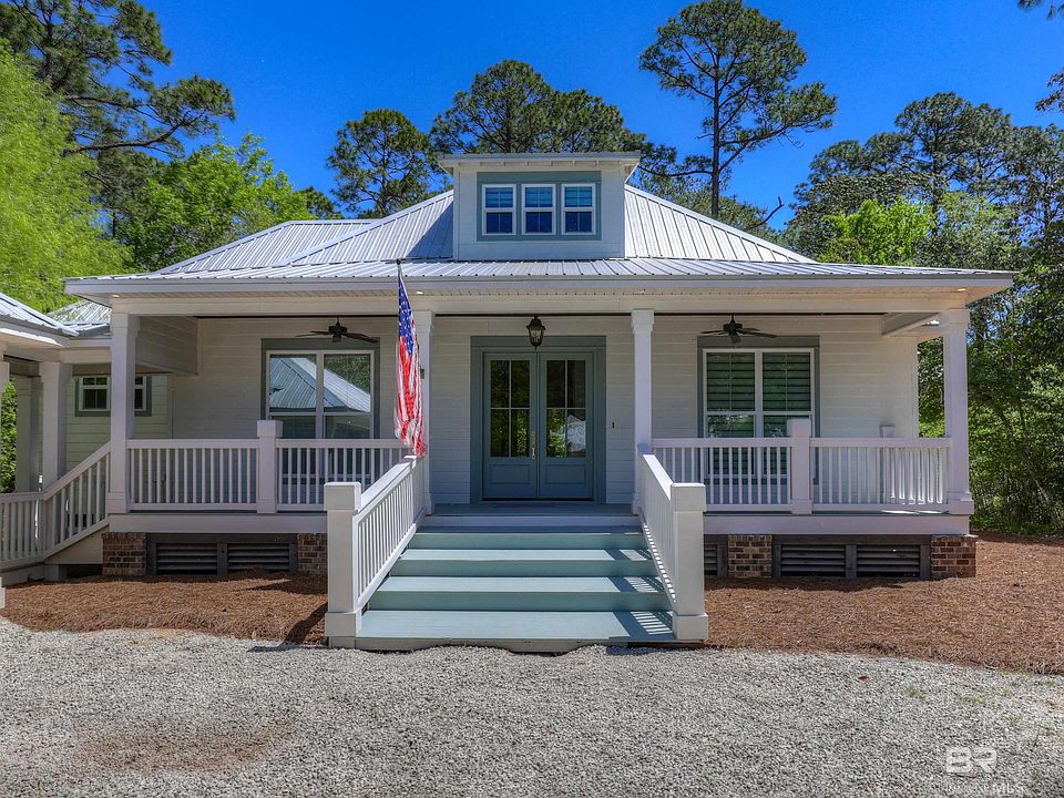 Discover your dream coastal retreat in Point Clear: a beautifully designed, Gold Fortified 3-bedroom, 3-bath cottage that blends classic charm with modern amenities. Nestled in a serene and picturesque setting, it offers the perfect balance of tranquility and convenience, just moments away from shopping and the Grand Hotel. This home boasts an open floor plan with high ceilings, solid surface flooring, and a fresh coat of paint, creating a bright and welcoming space. The chefs kitchen is equipped with marble countertops, double ovens, a gas range, and a spacious pantry, making it a culinary dream. Outside, enjoy the low-maintenance, all-natural landscape, carport, inviting porches (including a screened back porch), and a metal roof for durability. Continued peace of mind with an inside dehumidifier and complete encapsulation with life time warranty under the home. The property includes access to a neighborhood gazebo and a boardwalk for creek and Mobile Bay access. With ample storage, large closets, and an upstairs bedroom with an additional sitting room or study, this home is as practical as it is picturesque. Buyer to verify all information during due diligence.