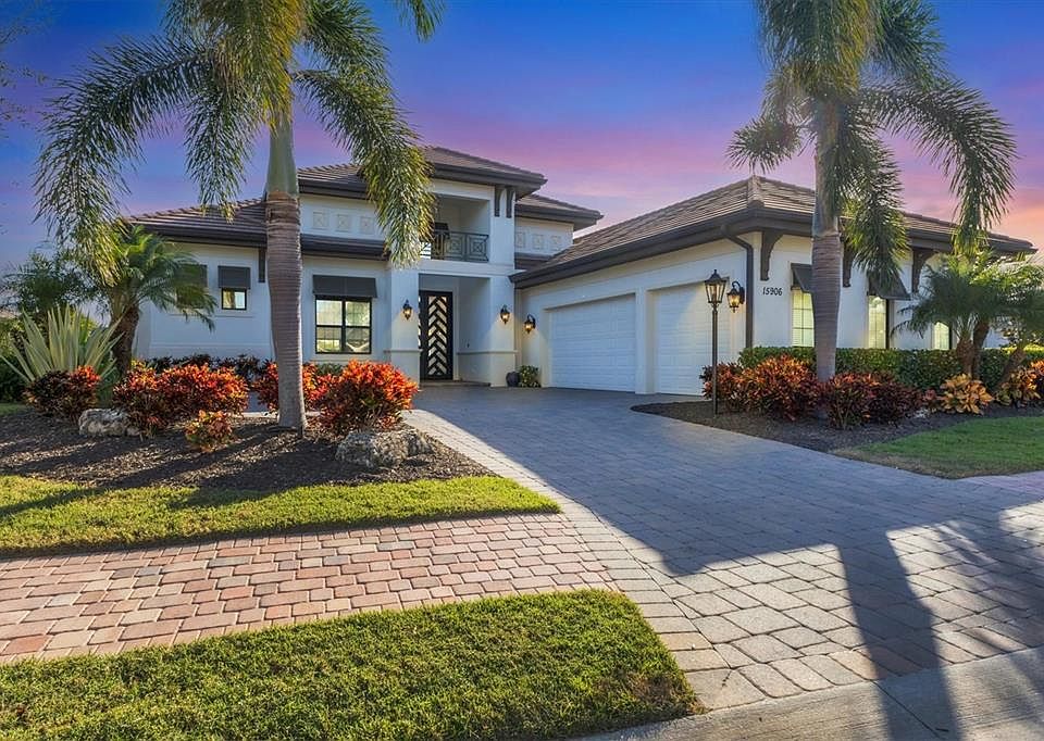 Welcome to Madison II, a former model home by Stock Signature Homes, positioned on an oversized, south-facing lakefront homesite. This stunning home blends luxury, design and functionality, offering an ideal setting for those seeking sophisticated living and a private lakeside retreat. As you enter through the custom 10-foot modern iron double doors, you are immediately greeted by an expansive, open floor plan bathed in natural light. The great room features soaring volume ceilings with elegant tray details, two sets of sliders opening to the spacious lanai and a seamless indoor-outdoor living experience. The heart of the home is the light and bright kitchen, designed for style and function. It boasts an oversized island, soft-close cabinetry, a walk-in pantry and top-of-the-line stainless steel appliances, making it a dream space for cooking and entertaining. The generous dining area provides the ideal setting for family meals or gatherings with friends. The home offers four spacious bedrooms, each with its own en-suite bath and ample closet space. The primary suite is a retreat, with dual walk-in closets, French door access to the lanai, plantation shutters and a tray ceiling. The luxurious primary bath features dual vanities, quartz countertops, a walk-in shower and a freestanding clawfoot soaking tub. The oversized fourth bedroom, with sliders to the lanai and a dedicated pool bath, can easily function as a bonus room or guest suite. The home office, just off the main living area, is designed for functionality and elegance, featuring glass French doors and engineered wood flooring, an ideal space for today’s remote lifestyle. Step outside to the expansive covered lanai, which is ideal for outdoor living and entertaining. The custom outdoor kitchen, complete with a built-in grill, vent hood, beverage cooler and access to the pool bath, makes this space ideal for hosting guests. The private lanai is an oasis, featuring a custom-built heated pool and spa, surrounded by lush, private landscaping. An extended air conditioned three-car garage with epoxy flooring offers plenty of room for storage or your favorite toys. The large laundry room is equipped with a utility sink and ample storage space for added convenience. Throughout the home, you’ll find high-end finishes and upgrades, including hurricane-impact glass and natural gas, ensuring comfort and security. Country Club East residents enjoy exclusive access to The Retreat, a neighborhood amenity center boasting a resort-style pool, fitness center and billiards room. Additionally, The Residents Club offers another pool, spa and a volleyball court for residents to indulge in leisure and recreation. For those seeking even more recreational options, just a few streets away lies the Lakewood Ranch Golf & Country Club, featuring 54 holes of golf, 20 Har-Tru tennis courts, multiple pools, and The Lodge bar and restaurant. Residents have the option to avail themselves of these facilities through various membership packages. Discover this gem in Lakewood Ranch, America’s top best-selling planned multigenerational community.