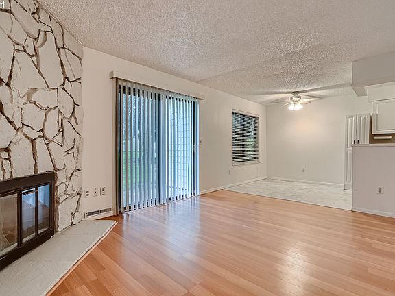 Don't miss this super affordable, move-in ready condo that has something for everyone! You will love the updated kitchen with its brand new stainless steel appliances. The open concept living room and dining area help this cozy unit feel spacious. The living room also has a wood burning fireplace, and sliding doors that lead to a ground-level patio that looks out onto a huge green area. There is a small storage closet off of the patio. The primary bedroom is spacious and has a large walk-in closet. No need to worry about laundry with the stacked washer and dryer included with the unit. Fresh paint and professionally cleaned throughout. Furnace installed in 2017. It even comes with a private detached garage for parking and storage. The grounds, with green space, a tennis court, and mature landscaping, are well maintained by the HOA. The entire complex was also recently painted and had a new roof installed in 2020. Seller shall payoff balance of special assessment at closing.