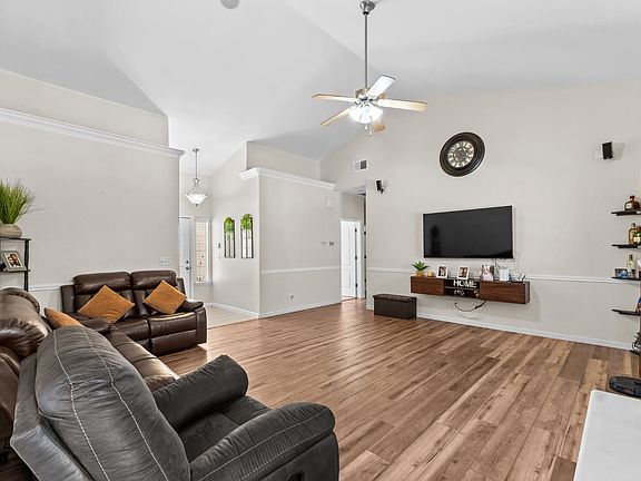 In a coveted Kerman neighborhood known for its treelined streets, this impressive home is characterized by light, airy interiors and fantastic outdoor spaces. Modern design meets contemporary aesthetics in the 1,684 sq ft layout boasting vaulted ceilings, Pergo flooring and integrated stereo sound. Beauty and practicality are in equal measure in the entertaining areas, centered around an outstanding kitchen with adjoining laundry. Both impeccably designed guest rooms offer earth tone decor, with the primary suite connecting to a sitting area, two walk-in closets and a luxury bath. Hosting a bubbling spa tub, raised gardens, fragrant fruit trees and a charming gazebo, the backyard invites outdoor entertaining and relaxation. With exceptional curb appeal, this turnkey home with a two car garage is set against manicured landscaping and a lush lawn. Just steps from the community park and elementary school, the prime location is just a 20 minute commute to Fresno via Highway 180.
