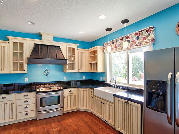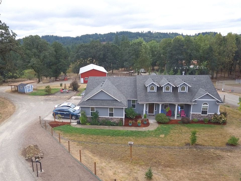 Gorgeous One Level Home on 7+Acres all Setup for Horses. Great Shop/Barn combo, stalls w/ turnouts. Additional barn, shed, and chicken palace! Home has great open floor plan with vaulted ceilings and tons of natural light, hand scraped bamboo floors throughout, stainless steel appliances, tankless hot water heater, Italian tiled fireplace, built in bookcases, custom cabinetry, big pantry, farm sink. Pro landscape, nice variety. Wow!