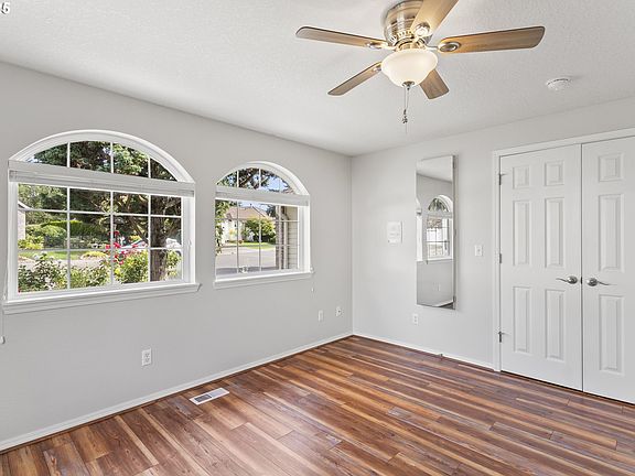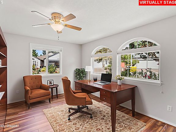 The first time a Princeville has come to market in over 10 years. It is a great room floor plan that was offered before its time, which is why only a few were built! Today, this floor plan meets the current functional needs of lifestyles. This home was expanded to 1,709 square feet and built in 1995, towards the latter part of the community. It features a taller roof pitch, a hip roof, and adds elegant curb appeal. The Garage was expanded in width and added a half bath. The property features ease of access, with a path that circumnavigates the entire home. Entrance features a large Foyer, room for a bench, and a guest coat rack. Double French doors off to the side open to an extra third room that everybody's looking for, with ample space, windows on two sides, bringing in a ton of light for the office, flex room, and more. As you enter, you'll feel the rare tall ceilings that you won't commonly find in the village, accented by a gas fireplace with tall side windows that open to the kitchen and dining area, accessing a relaxing, low-maintenance composite decking and covered patio out back. The primary suite is entirely functional, featuring a walk-in closet, a large double vanity, and a beautiful tile shower. You'll enjoy the spacious room, with corner windows bringing in natural lighting. The guest bedroom is located down the hall, just off the guest bath. A completely functional laundry-mud room just off the garage, accessing the main home and kitchen area. Replaced the AC, hot water tank, furnace, enjoy the features of the water softener and a reverse osmosis at the kitchen sink, beautiful cabinets, granite countertops, under an under-mount sink, and the home was just freshly painted. Move-in ready or add your custom flooring to make this perfect!