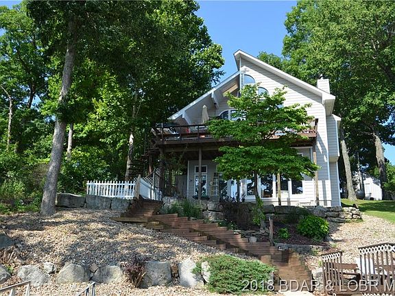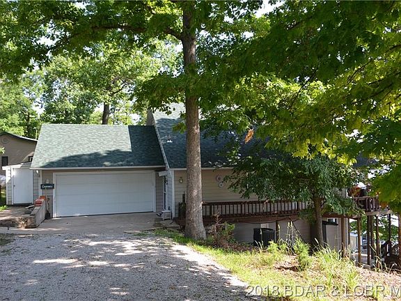 Gorgeous Main Channel Views! This 2 1/2 Story, 4 BR, 3.5 BA Lakefront Home has Everything Needed for a Perfect Vacation Home or Full Time Residence. Tons of Outdoor Entertaining Space with Large Wrap-around Main Level Deck, Lower Level Patio & Lakeside Martini Deck. 2-Well Dock with Swim Platform, 1 Boat Lift & Double PWC Lift. Deep Water at the Gravois 5 MM. Main Level Features Living Room with a Wall of Windows to Enjoy the View, Gas Fireplace, Spacious Master Suite & Beautiful Kitchen with Custom Cabinetry, Tile Back Splash, Corian Counter Tops & Pantry w/Washer/Dryer Hookup. Lower Level has Family Room, 2 Guest Bedrooms, Guest Bath & Laundry Room. Upper Level Loft is Currently being used as a Man Cave but could be used as a 4th Bedroom or Office. Large 2-Car Attached Garage w/Workshop & Storage Area. Many Recent Updates Including Wood Flooring, New Roof in 2017 & HVAC 2015. Nice Landscaping & Low Maintenance Yard. Exterior has Durable Smart Board Siding. This One Won't Last Long!