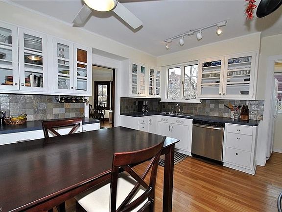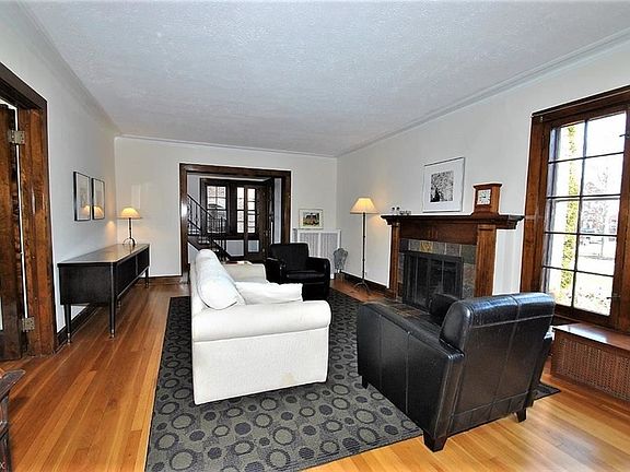 Beautiful Tapestry Brick with unique architectural details and a terrific Tri-schools location! Covered front porch with decorative stucco, hardwood floors through the 1st and 2nd floors. Beautiful wood trim. Living room features a restored fireplace mantle and newer slate surround and hearth with glass doors. Adjacent is the sun room which leads out to enclosed porch. Formal dining room has large bay window and also leads out to enclosed porch. Eat-in kitchen has white cabinets, with glass fronts, slate tile backslash, separate pantry and all stainless appliances. Second floor features 4 bedrooms and two bathrooms adjoining bedrooms. The master bath has a stall shower and the rear bath has a tub/shower combo and both are classic white and black. Third floor features 2 bedrooms and a full bath with claw foot tub. Enclosed porch is a lovely place to relax and leads out to the brick patio. The yard is nicely landscaped with garden beds and lawn. Newer Anderson windows in most rooms, HSA home warranty, newer 40 year roof (full tear off). Onaway elementary school area, also convenient to the rapid line, the Shaker Library, Heinen's grocery and coffee shop.