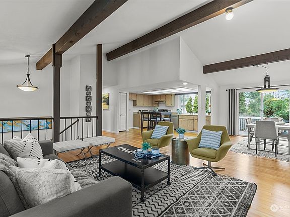 Amazing split level home in the Fairwood Greens community. At the top of the stairs you enter a great room with vaulted ceilings, exposed beams and south facing windows with plenty of natural light. Entertaining is a breeze with two large decks, one off the front and back of the house. Wood burning fireplaces on both levels, updated bamboo flooring throughout, 50 year shingle roof and newer gas furnace and water heater. Plenty of interior space too with two recreational/family rooms downstairs. Fully fenced yard with beautiful landscaping. Tons of recreation in the area as well as quick access to freeways.