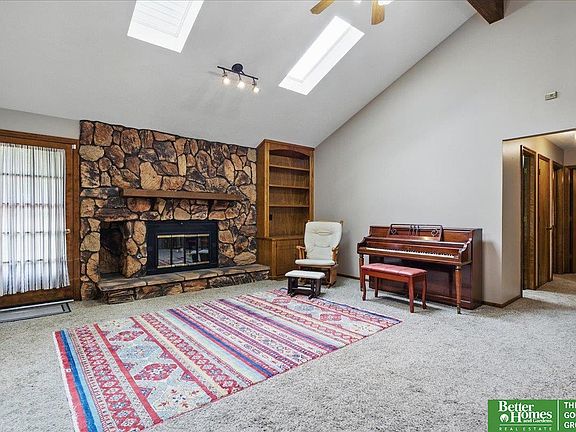 This cutie home in the Millard North School District is an incredible deal. Sitting on a south-facing and fully fenced lot, this home has light pouring in from all sides with big picture windows and sky lights in the vaulted ceiling. A grand fireplace flanked with built-in shelving welcomes you in the living room with professionally cleaned carpets. The eat-in kitchen has tons of storage along with granite countertops and subway tile backsplash. Ceiling fans in all bedrooms – including the primary en suite. The lower level has a spacious living room and walks out to the extra wide garage. Updates like a newer garage door opener, water softener, water heater, and radon mitigation system give peace of mind. Low-maintenance vinyl siding, storage shed, and oversized deck round out the amenities rare in this price range.