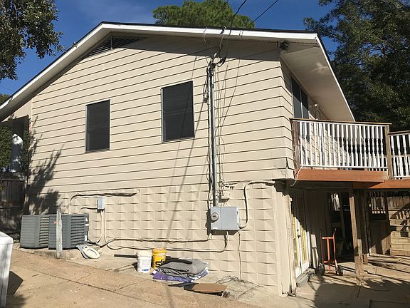$30,000 Below appraisal value at $89750. Close to everything and 3 minutes from I10 ..Almost complete on light renovation. Painting and cabinets granite counters and cleaning up. Nice corner lot with privacy fence vineyard and Citrus tree under shaded oaks. Large elevated deck overlooks the rolling hill side. No flooding or f- ins required. Plenty of concrete parking and so much more. Best value around and in the Jackson county schools district one of the top rated in the state Call me to come see ... 228 three nine 2 eighty three 82 ... currently being painted inside and out but ready to sell today new stair case large laundry room wine cellar duel lever heat and air with affordable gas heat raised 6 panel doors tons of storage a little office area and so much more