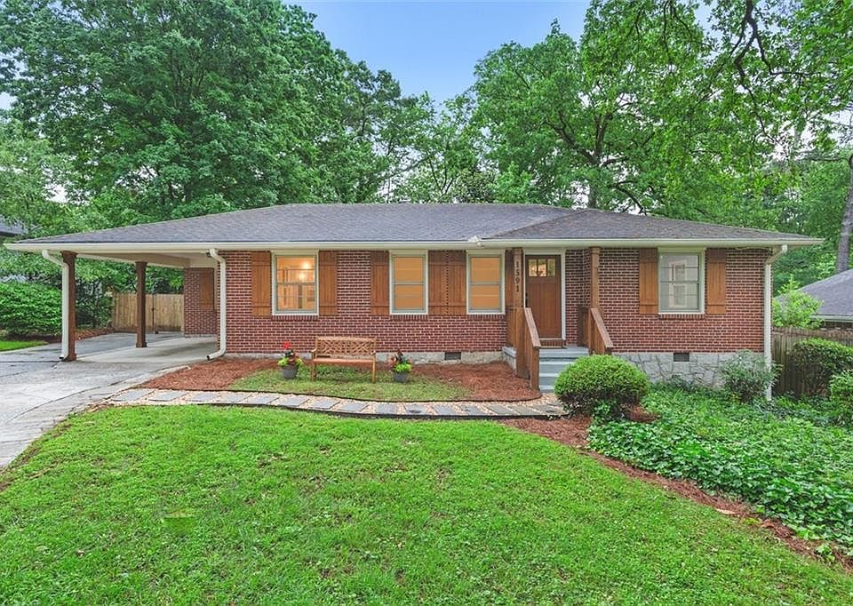 Nestled in a conveniently accessible location, this stunning three-bedroom, two-bathroom cozy & serene ranch exceeds expectations, offering a perfect blend of comfort and elegance. Extravagant, oasis of a backyard & beaming natural light throughout! Step inside this gorgeous home to a large living room with beautiful hardwood flooring peaking into the separate, grand dining room offering a brand new modern chandelier. The sophisticated and open kitchen offers newly painted white cabinets with a great-sized pantry and ample cabinets overlooking the retreat like great room with recently updated modern flooring, high ceilings, skylight and soaring windows all around with an access door to the large deck, inviting you to relax and unwind. The primary suite will leave you stunned! Upon entering, be welcomed through a hallway with access to the extra-large walk-in closet and a primary bathroom offering double vanities & a stand-up shower. This massive primary suite has recently updated flooring as well as private access to the deck through its gorgeous double French doors. Two other spacious secondary bedrooms with a secondary bathroom, fill into the perfection of this home. Truly an entertainer's paradise offering endless possibilities with this massive, lush green, flat backyard. This home boasts elegance & is simply magnificent! With its proximity to I-85, CHOA, Emory University and Hospital, CDC, the VA, and more, this home welcomes you to a lifestyle of convenience and luxury. Welcome home! *Home has been virtually staged* BRAND NEW ROOF & NEW WATER HEATER, WITH WARRANTY, BEING INSTALLED!
