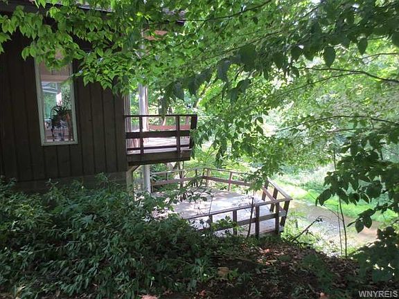 Wow! over 600 feet of Johnson Creek runs through this property! 1970s Custom designed Contemporary Hillside Ranch with 2 cantilevered decks. Breathtaking views from inside and out! Sunken Living room, Vaulted Ceilings, 2 fireplaces, walkout lower Rec Room, 3 baths. Attached and detached garages, new roofs and furnace. Stone patio, private wooded lot. Home is 300 ft from road. Underground utilities. Cabin back in the woods. Built-in pool with new liner! Blackberry bushes, grapevines. This is a beautiful property! Like to fish? This is it! Salmon fishing just a few steps out the door!
