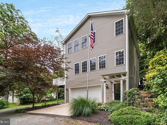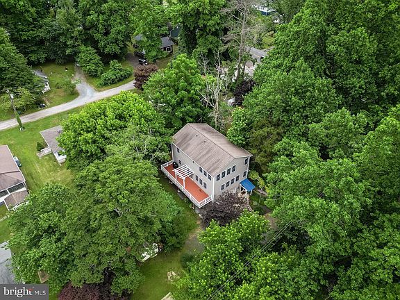 BEACH BLOCK! This home offers a water-focused lifestyle with many beautiful floor plan features + seasonal Chesapeake Bay views. Living just one block to the beach and boat ramp makes this an incredible location. The very open mid-level great room and full-length deck on the side of the house will knock your socks off! This space offers multi-zone outdoor living as an extension of the fantastic heart of the home. You'll appreciate the gorgeous hardwood floors, special architectural extras like a barrel vault entry to the dining room, and a very open floor plan with massive amounts of windows toward the bay. Gather in the large kitchen with stainless appliances and a perfect work triangle. The kitchen space includes an island and much-used desk zone, is located for easy service to breakfast area and very special private dining room. The dining room also leads to the rear terrace-imagine the dinner parties! The primary suite is very impressive and has beautiful views, a large WIC, deluxe updated bathroom with jetted tub and fully tiled shower. Three more bedrooms, laundry room and updated hall bath are also on this level. Ground level entry with family room, storage and half bath is a terrific flex space for office, media room or gym. The oversized two vehicle garage has shop space, storage and utility sink. Two sheds convey, private lane provides very low traffic environment.