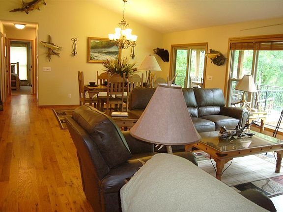 PERFECT River home has 162' of White River Frontage & boat launch just 100 yards away! Great views from all sides of home river & bluff, 3 BR, 2 BA, split bedroom plan. Cypress, cedar, stone exterior. Easy maintenance hardwood floors, hickory cabinets, gas fplc. walk-in closet, his/her sinks in master, tongue-groove cathedral clgs. Fabulous for entertaining. Built 2010, but is in better-than-new condition, beautiful landscaping. Covered deck on river side.