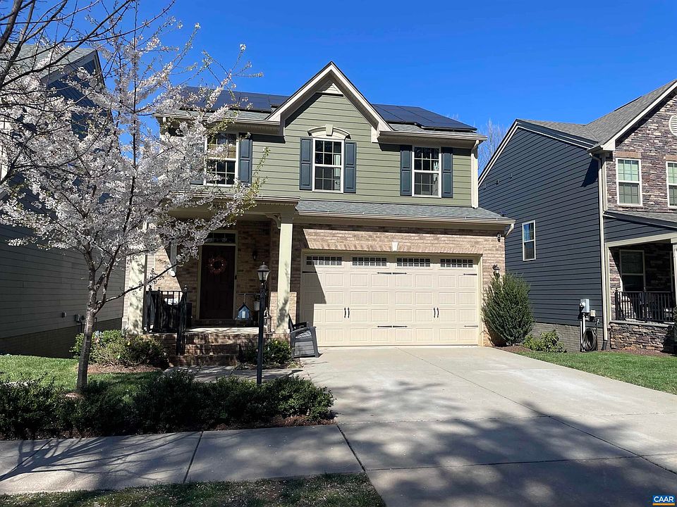 Stunning and welcoming 5 bedroom/ 4.5 bath house located in the highly sought after neighborhood of Cascadia. Open House Saturday March 30, 12-1. House is located near the end of the street so there is only cul de sac traffic! Don't let this gem pass you by! This home has all the extras! Main floor includes an accessible bedroom/ bathroom, bright kitchen with double oven and new dishwasher, dining, and living room. The second floor boasts 4 lovely bedrooms/ 2 baths and laundry. Walk-out finished basement includes bonus room, office/ den, bathroom and 2 unfinished storage rooms. 1 car garage plus extra space for storage. Solar - offsets electricity bill by 90 percent. This home is Pearl certified. Minutes to everything, Darden Towe Park, Pantops, Downtown, shopping, Rivanna River I-64, trails, etc. HOA includes yard maintenance, trash/ recycling, pool, club house, playground.