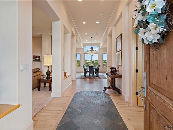 Stately executive home on 1.86 acres in desirable Diamond Ridge Estates with dramatic views of 90 acre Preserve- complete with miles of walking trails. Diamond Ridge has an easy access to I25 for a quick commute into DTC, downtown Denver, or Colorado Springs. The neighborhood offers a clubhouse, pool, tennis & sport courts. The neighborhood is friendly and welcoming with various HOA sponsored events: picnics, BBQs, Halloween activities for the kids. DRE has no metro district so the taxes are very low compared to comparable neighborhoods. All new appliances, new HVAC, new hot water heaters, new radon mitigation, new insulation in attic, new interior paint. Private stairway access to basement from garage, perfect for mother in law or adult children. Master bedroom is stunning with massive vaults, spiral staircase to a loft and private deck. The views can't be beat!!