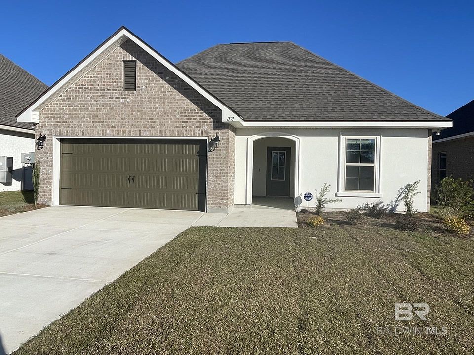 Awesome builder rate + choose 2 of the following free: front gutters, refrigerator, smart home package, or window blinds. Restrictions apply. The NOLANA IV A in River Oaks community offers a 3 bedroom, 2 full bathroom, open design. Upgrades for this home include wood look ceramic tile flooring throughout, blinds for the windows, quartz countertops, custom tiled shower with frameless door in master bath, upgraded cabinets and hardware, undercabinet lighting, a gas fireplace with quartz surround, and more! Special Features: double vanity, garden tub, separate shower, and walk-in closet in master suite, walk-in closet in bedroom 2, kitchen island, walk-in pantry, boot bench in mudroom, covered front porch and rear patio, recessed lighting, ceiling fans in living room and master bedroom, framed mirrors in all bathrooms, smoke and carbon monoxide detectors, seasonal landscaping package, architectural 30-year shingles, and more! Energy Efficient Features: tankless gas water heater, kitchen appliance package with gas range, vinyl low E MI tilt-in windows and more! *Gold Fortified Certified Home* Estimated completion November 2024. Buyer to verify all information during due diligence.