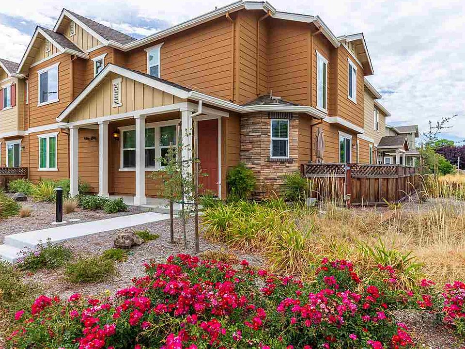 Spectacular, newer townhome with high ceilings walkable to BART, park, trails, coffee shops, restaurants, and shopping. Contemporary kitchen with grey quartz countertops, subway tiles, breakfast bar, stainless-steel appliances, gas cooktop and maple cabinets. Beautiful master bedroom suite dual vanities, soaking tub, separate shower, large walk-in closet and two additional generous-sized bedrooms. Utility room has built-in cabinets, laundry hook-ups, and sink. Attached two car garage with interior access to home. Private patio with access to the dining area.