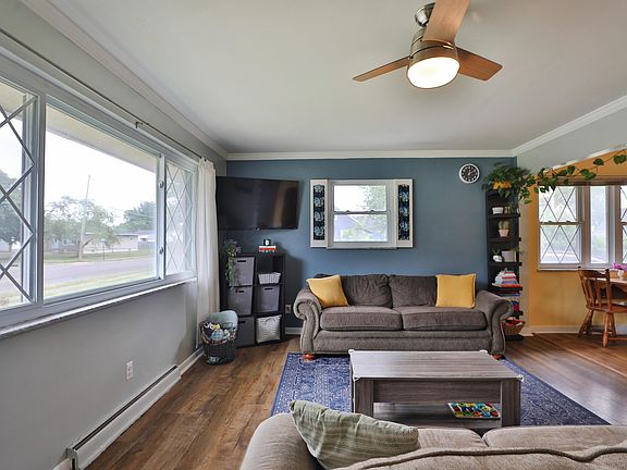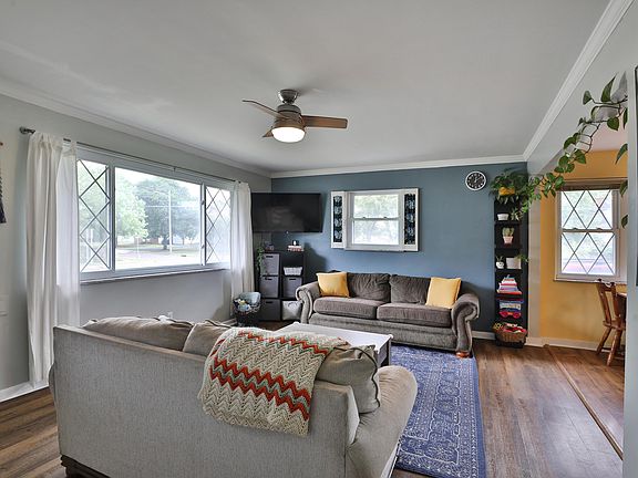 Bright and welcoming 3BR ranch with charming curb appeal! Upon entry, enjoy the open floor plan! Large windows allow lots of natural light to shine throughout! Updated kitchen features tile backsplash, quartz counters, a breakfast bar, and plenty of cabinet and prep space! Spacious bedrooms with generous closet space. Updated full bath with modern tile work and thoughtful accents. Full basement offers tons of storage, a cozy rec room, convenient 2nd full bath, and laundry area. There is also a W/D hookup in one of the entry level bedrooms. 1 car detached garage! Prime location near parks & shopping with easy access to freeways. Furnace 2022 & Roof 2021!