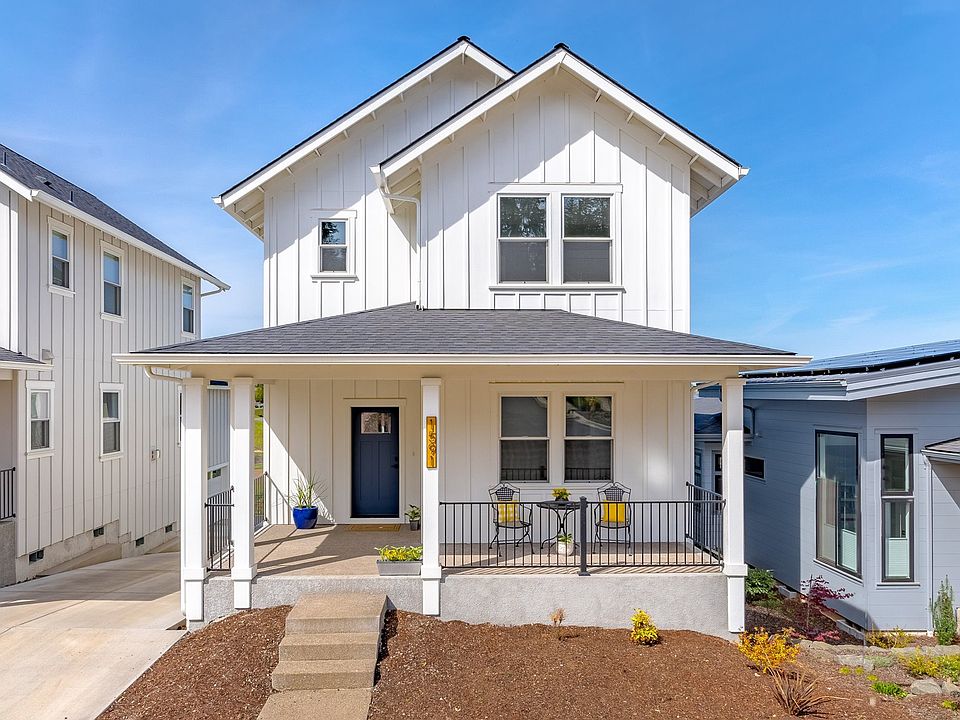 Move In Ready! This custom-built home, in the highly desirable Fairview Addition Front Porch Community, features a main level Primary Suite, spacious Living Room, open concept Kitchen & Dining, gas stove, pantry and a large Deck that overlooks Leslie's green fields with mountain views. Upstairs consists of a huge bonus room, 2 bedrooms, and bathroom. Enjoy your spacious covered front porch and neighborhood with pedestrian friendly sidewalks, an urban farm, pocket park+. Close to I-5, schools, and shopping.