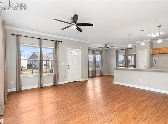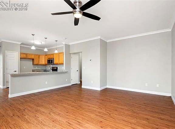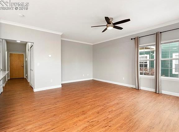 Charming home centrally located minutes from downtown Colorado Springs! This amazing main level condo boasts an open floor plan that has been completely, professionally remodeled, top to bottom. Upon entering, You are greeted to new floor coverings and crown molding, throughout the whole home. The kitchen features stainless steel appliances, new granite counters and breakfast bar. The large Master bedroom features a walk-out to a private balcony and an updated walk-in closet, complete with custom shelving and shoe cubbies! The attached Master bathroom is totally remodeled with new fixtures, mosaic tiles, enlarged shower with bench, and lighting. Down the hall you will also find the hall bath, second spacious bedroom and laundry. The one car attached garage offers a lock-out storage closet as well. Mountain & City views! Easy access to major highways! Don't miss out on this gem, come see today!