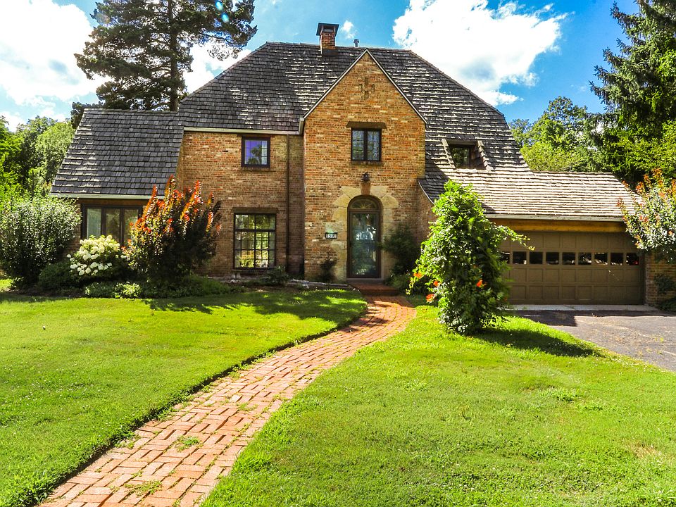 Fresh updates make this enchanting English Tudor in the highly coveted Geneva Manor neighborhood even more desirable. This handsome two story boats an incredibly rare double lot, offering immense privacy and the potential to add a pool (buyer to verify). Double course brick construction with hand split cedar shake roof combine with vintage steel windows and mature perennial landscaping to deliver a most remarkable lake home experience. This home has maintained most of its original character while still offering an updated kitchen and master suite. Stroll to the lakefront park with summer lifeguard and sough after sand-beach, or walk the shore path to town. This home is ready now for immediate summer fun.