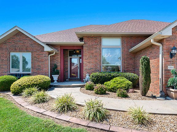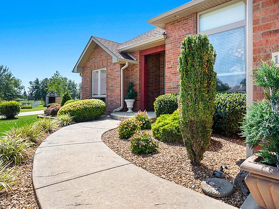 Discover Luxury Living in Bolivar's Lakewood Hills! This elegant single-owner home boasts more than 2300 square feet of spacious living, featuring three bedrooms and two bathrooms. From the moment you step into the foyer, you'll be captivated by the tall ceilings and timeless design. A grand living room with soaring ceilings awaits to the left, perfect for gatherings and relaxation. A formal dining room on the right sets the stage for memorable dinners. The heart of the home is the expansive kitchen, adorned with abundant cabinets and stunning granite countertops. An inviting breakfast bar overlooks the cozy hearth room with a corner propane fireplace, creating a warm and welcoming atmosphere. Step outside to the large covered patio, an ideal spot for al fresco dining or simply enjoying the serene surroundings. A generous walk-in pantry, a guest bathroom, and a laundry room are conveniently located nearby, all seamlessly connected to the spacious three-car garage. Retreat to the north end of the home, where you'll find the sizable primary suite. This private oasis features its own entry door to the covered wrap-around back patio. The en-suite bathroom boasts an extended double sink vanity, a soothing jetted tub, a walk-in shower, and opens to a spacious walk-in closet, offering a tranquil escape. On the opposite end of the house, you'll discover two more generously sized bedrooms that share a well-appointed hall bathroom, ensuring comfort for family and guests alike. Outside, the expansive .40-acre lot beckons with a large backyard and the added bonus of being adjacent to John Player Rotary Park, providing a peaceful walking path and nature at your doorstep.Live on one of Bolivar's most prestigious streets, nestled in the heart of coveted Lakewood Hills, with quick access to Highway 13 for effortless commuting. This home exudes timeless charm, featuring an all-brick exterior with stone accents and wood timbers framing the inviting covered front porch.